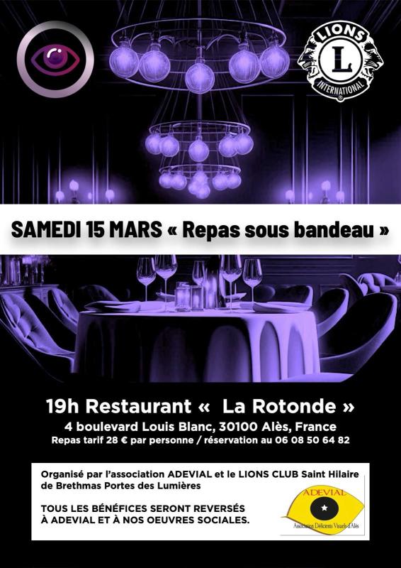 Le LIONS CLUB ST HILAIRE DE BRETHMAS et ADEVIAL vous invitent à une expérience culinaire unique et sensorielle : un repas sous bandeau