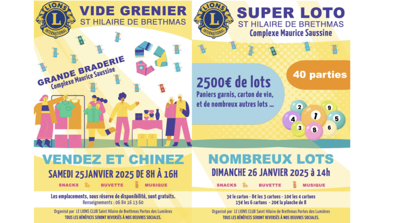Et dimanche 26 janvier, venez gagner à notre grand LOTO à la salle Maurice Saussinne de St Hilaire de brethmas.
