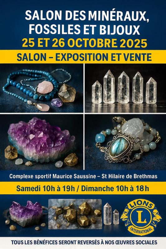 Le LIONS CLUB SHB est fier d'organiser son tout premier Salon des Minéraux, Fossiles & Bijoux, les samedi 25 et dimanche 26 octobre 2025 à Saint-Hilaire-de-Brethmas.